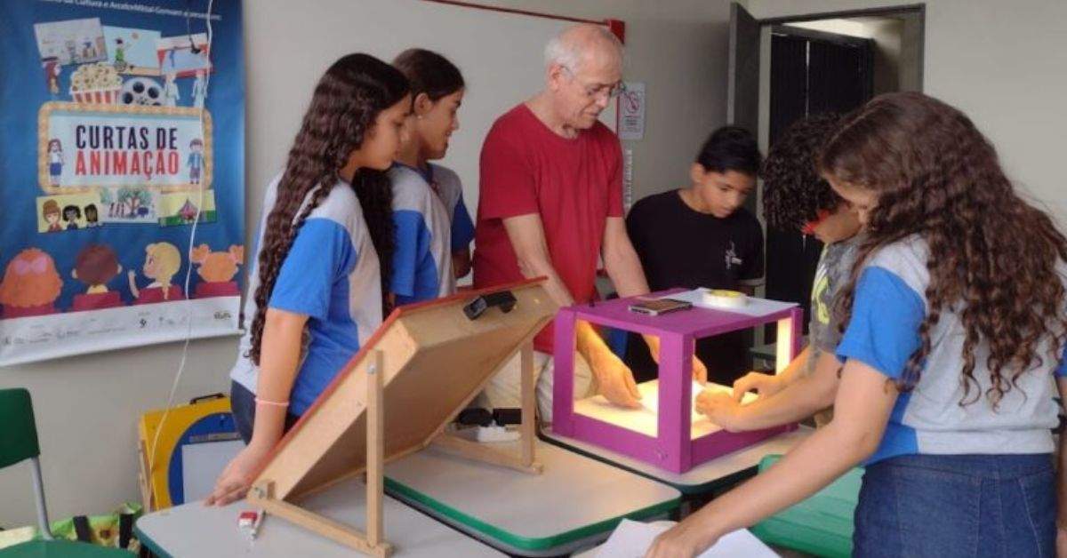 Wilson Lazaretti em uma das oficinas do Núcleo no projeto Oficinas de Animação (2025) – Divulgação