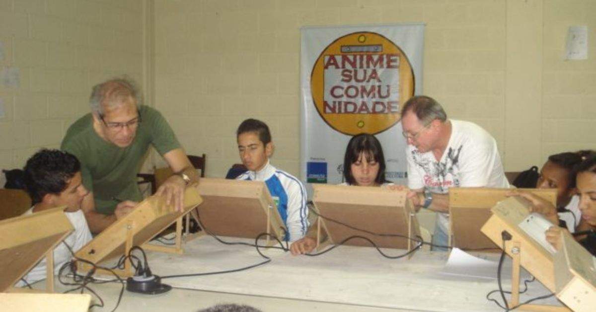Maurício e Wilson numa das oficinas que levam às escolas (20??) – Divulgação
